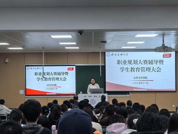 11月6日晚,公共卫生学院在理论教学楼教室召开职业规划大赛辅导动员会议。学院党委书记张浩、年级辅导员及学院全体在校学生参加了会议。会议邀请了学生处副处长吴涛副教授作专题报告,2024年全国职业规划大赛铜奖、安徽省金奖获得者,临床医学2022级阎嘉琪同学分享参赛经验,会议由吴金萍副书记主持。