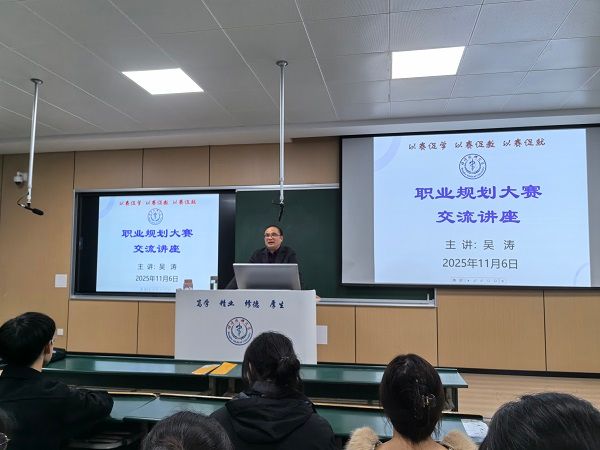 吴涛结合多年指导学生就业与职业发展的实践经验,围绕大学生职业规划的重要意义、赛事解读与备赛策略等内容展开了深入浅出的讲解。其报告内容详实,见解独到,为同学们参与职业规划大赛以及个人未来发展,提供了宝贵的理论和实践指导。